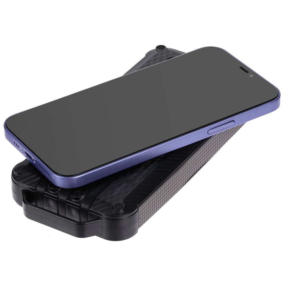 Прорезиненные вставки и рисунок на корпусе с имитацией карбона добавляют хорошей агрессивности внешнему виду аккумулятора — сразу видно, что его хозяин готов к приключениям.